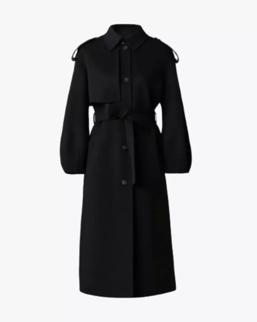 Made with luxurious double-face virgin wool. This coat features a straight silhouette, sash belt, balloon sleeves, and a classic spread collar.