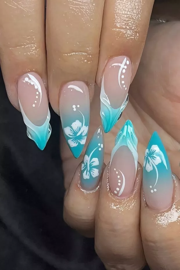 These Summer Nails push bolder territory without crossing into chaos. The aqua tips follow 2026 nail color trends, favoring cool contrasts. Itβs not subtle, but itβs controlledβand thatβs why it works.