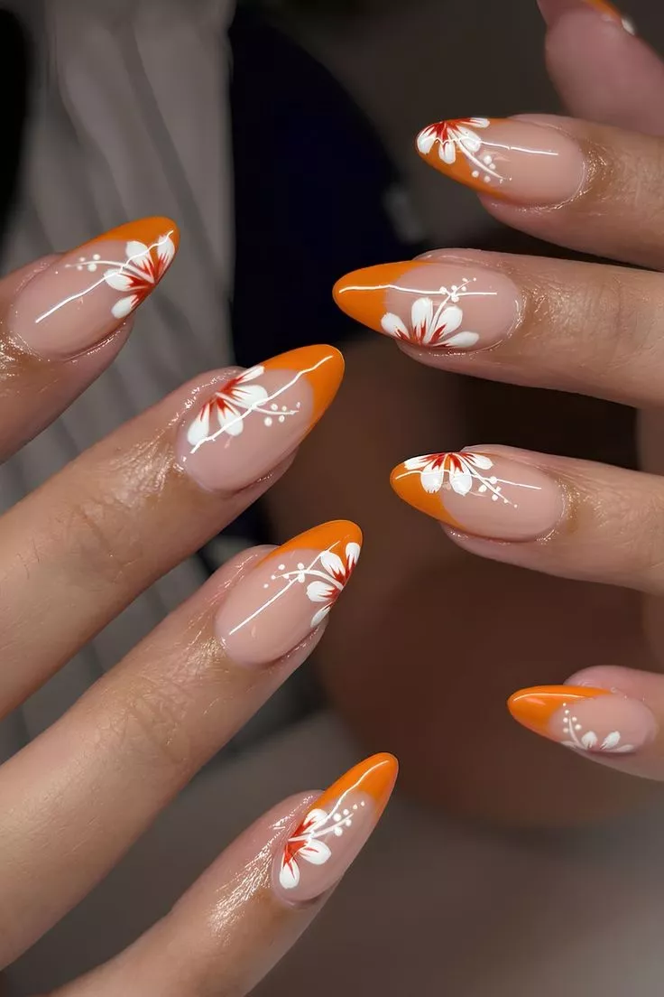 These Summer Nails work because the orange stays warm, not neon. The daisy detail adds charm without stealing focus. These lines up well with 2026 nail color trends moving toward softer brights that age better.