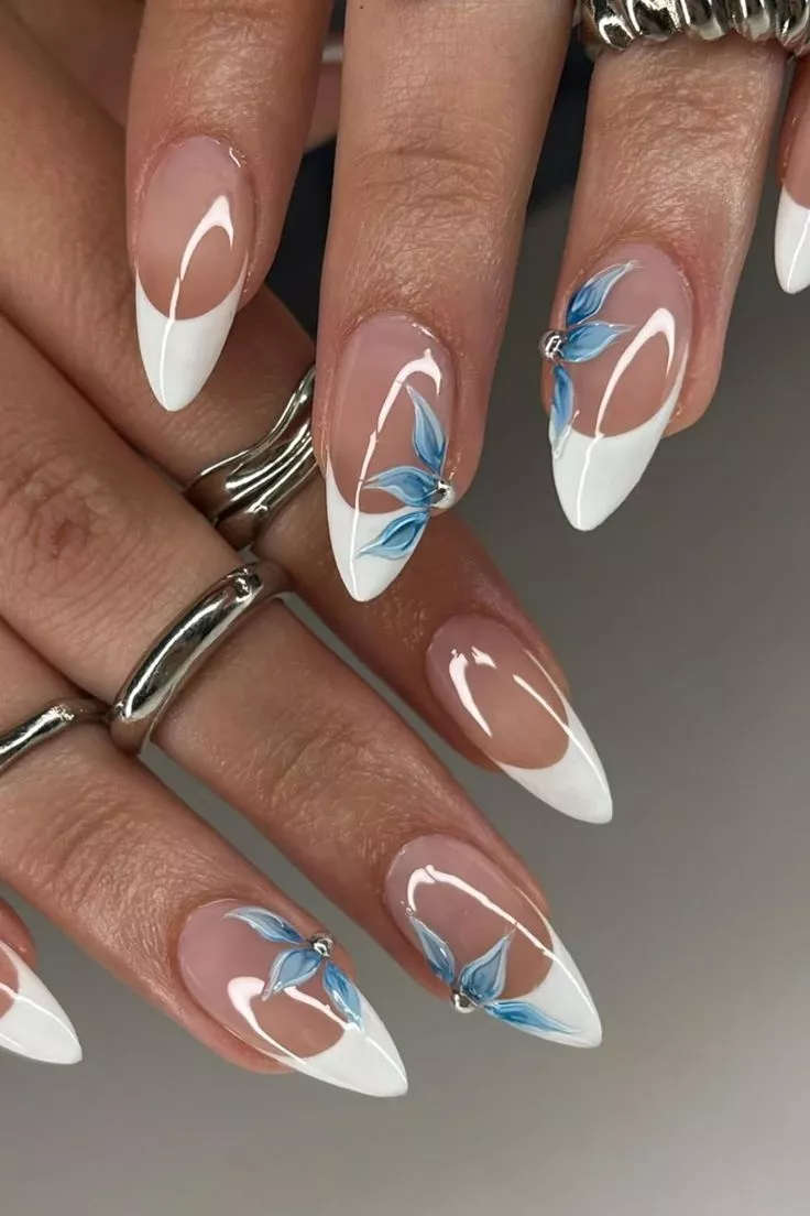 These Summer feel elevated because the blue stays cool and precise. The floral placement is deliberate, not scattered. This fits 2026 nail color trends, favoring clean contrasts and detail that rewards a closer look.