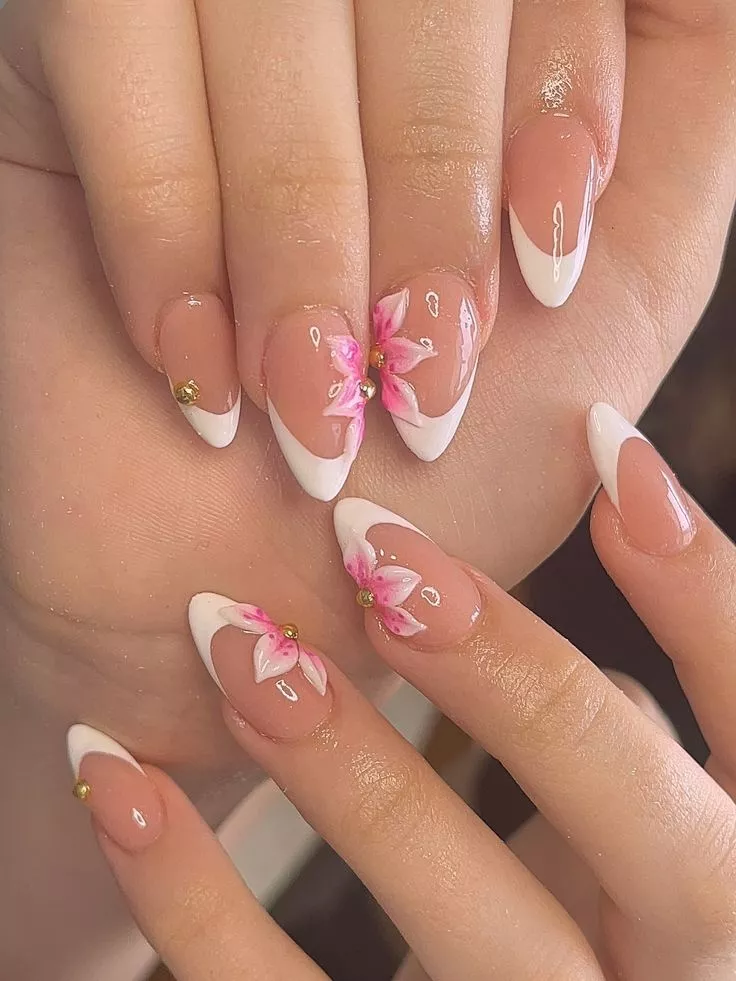 These Summer Nails mix crisp red French tips with soft florals, which is harder to pull off than it looks. It works because the base stays clean. This fits 2026 nail color trends that lean bold without going loud.