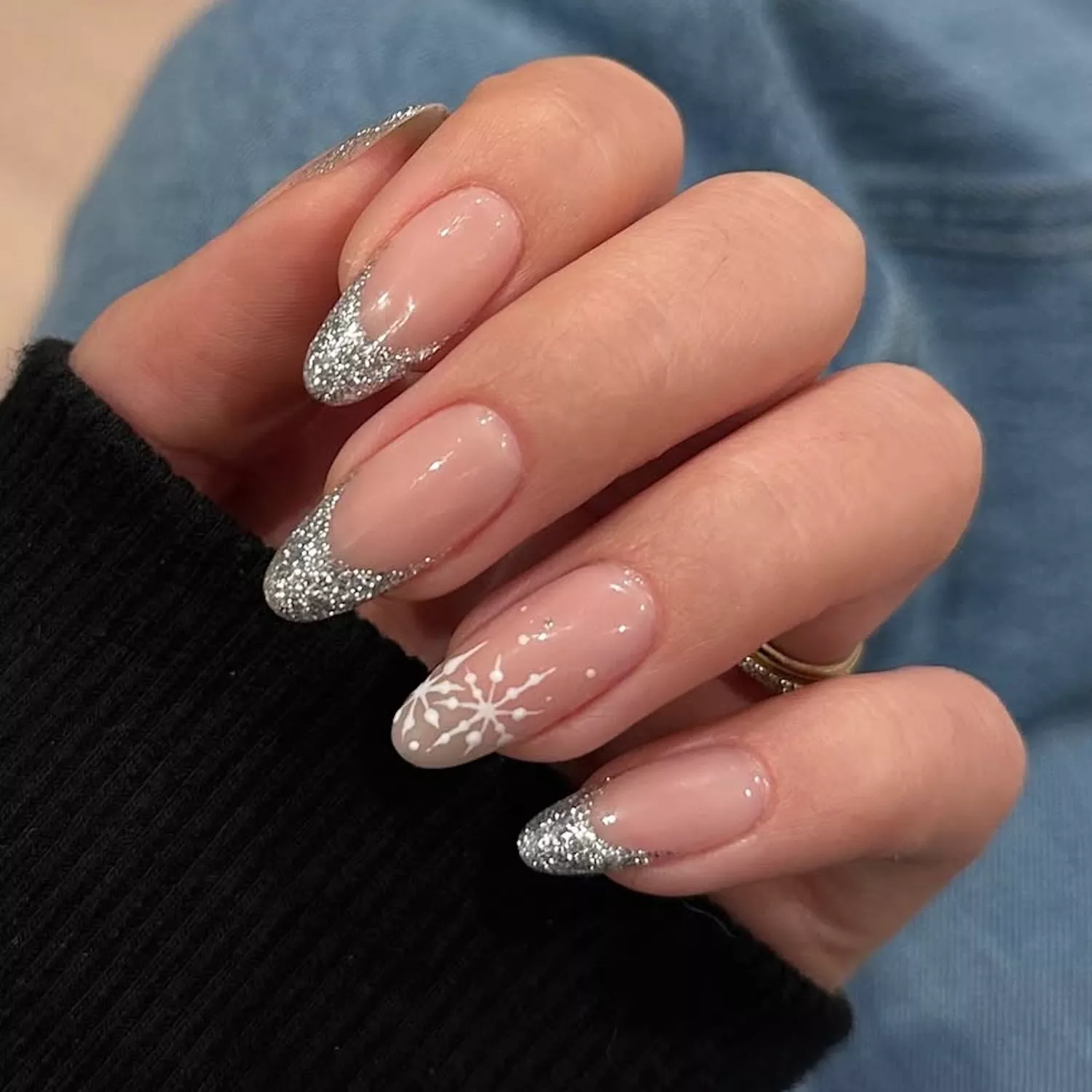 Glitter-Tipped Almond Nails