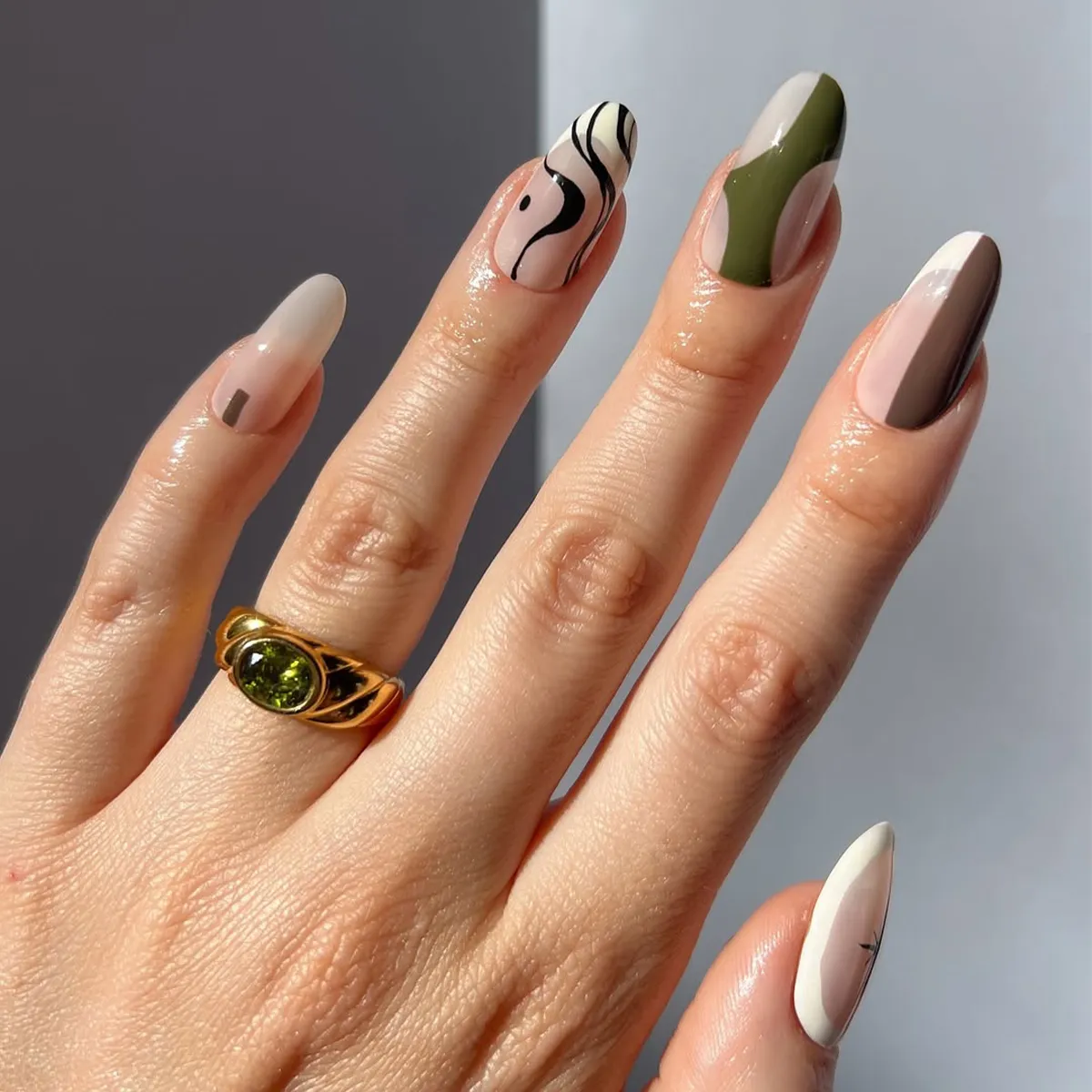Different designs across almond nails sound riskyāand usually are. This works because thereās a shared color story. Keep one hero nail. Too many accents kill the clean almond effect.
