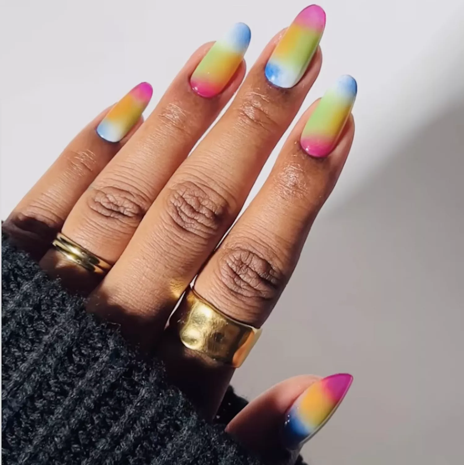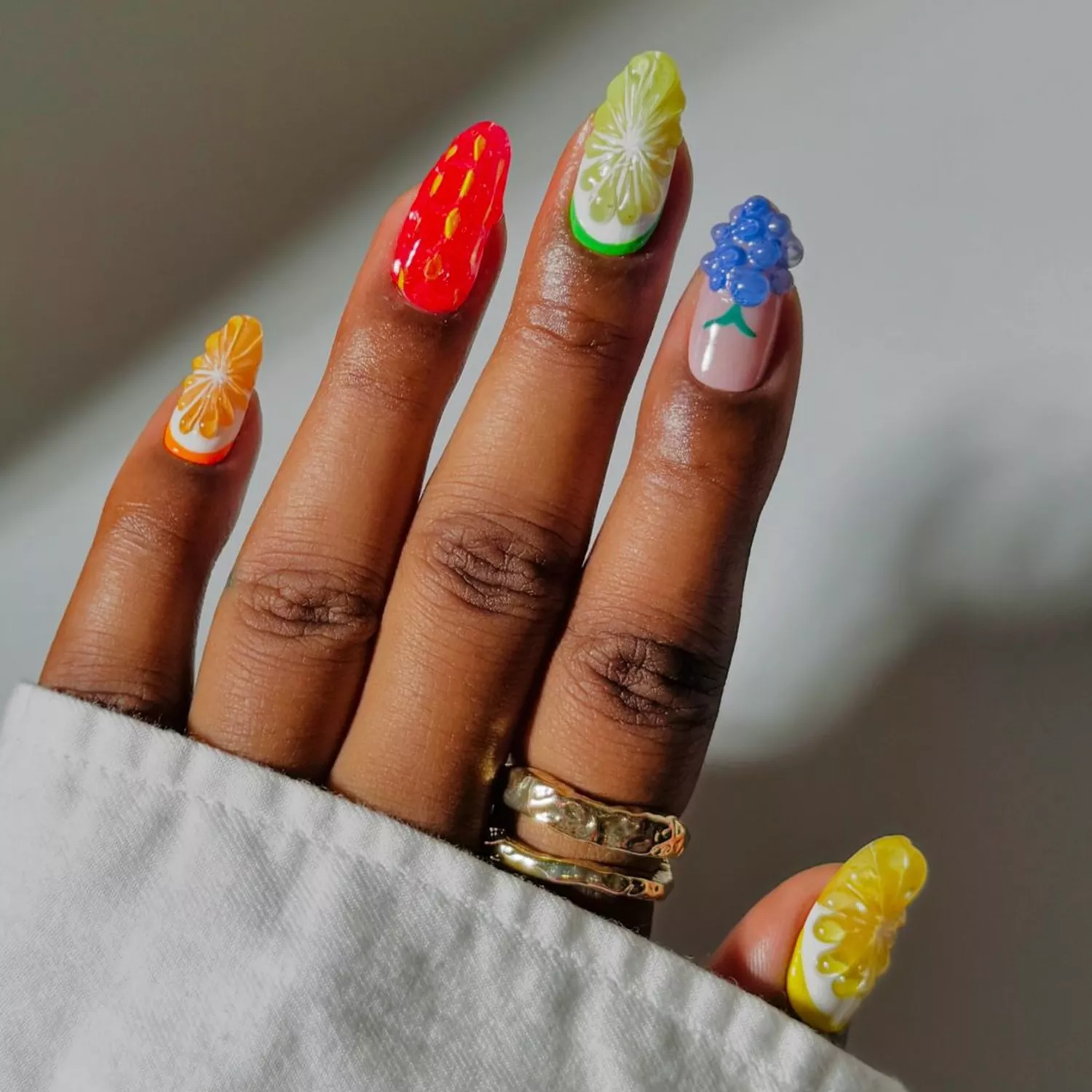 Sometimes we all board with those similar designs. Try this loud, chaotic, and perfect for beach nails mode. The colors thrives in sunlight.