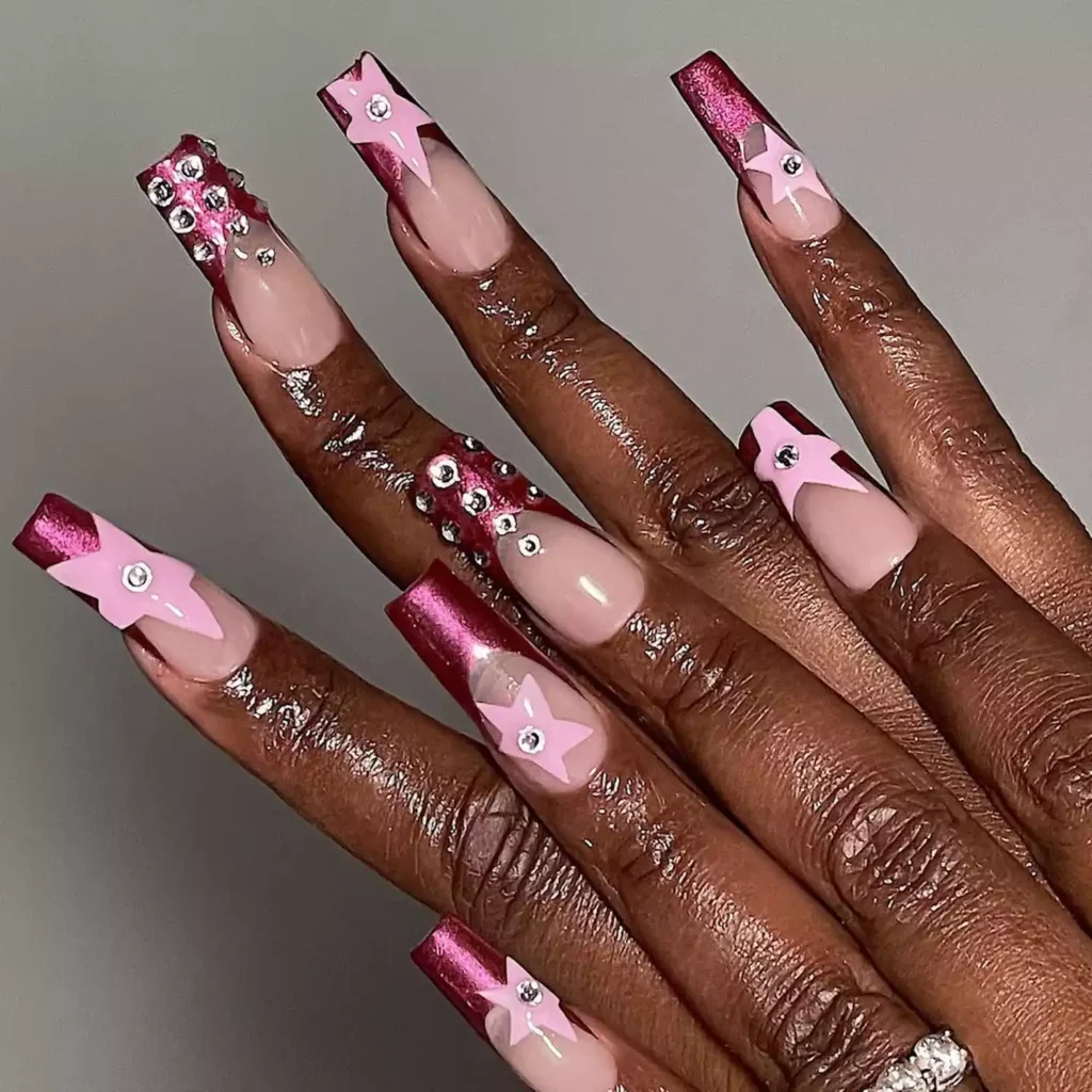 Tiny heart accents instead of full designs. That’s the difference. The base stays sheer, the shape stays sleek, and the detail feels intentional. Go bigger than this, and it starts looking like nail art, not style.