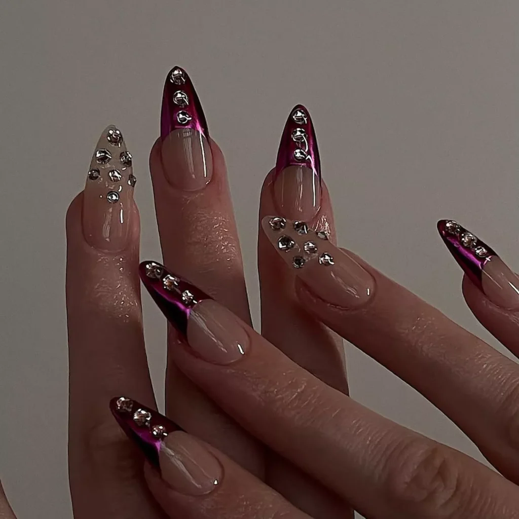 Something very different, it looks metallic with a soft pink base. The only mistake you should avoid is over-polishing everything. Keep your nails simple and let the chrome bearthe.