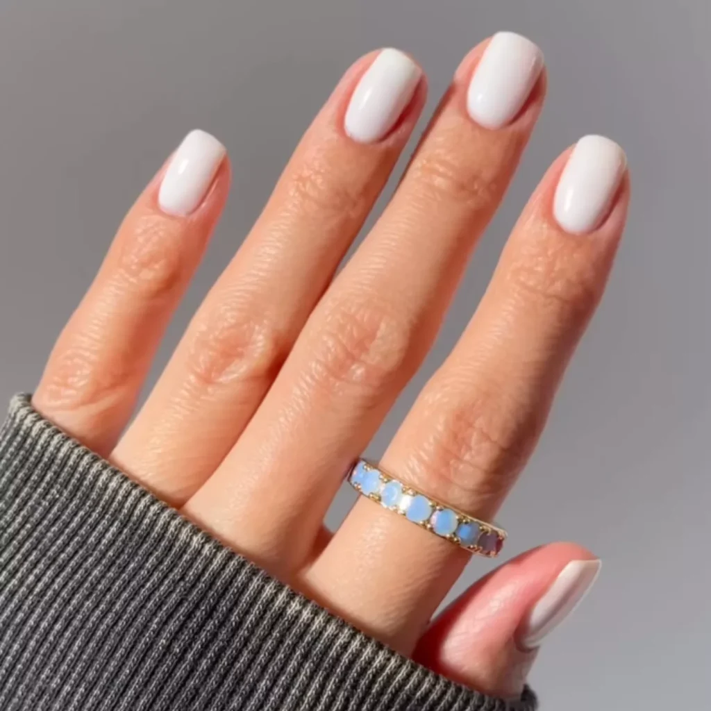 Short, rounded, and intentionally understated. The milky white finish is soft and romantic without relying on hearts or reds.