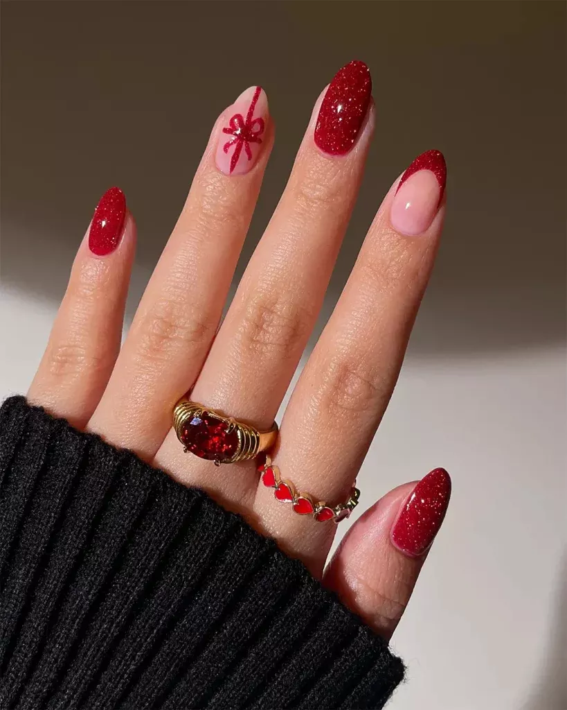 What works: micro-glitter or shimmer topcoats layered over nude, red, or milky pink. I stopped doing full glitter nails years ago—accent nails only. Anything else looks dated fast.