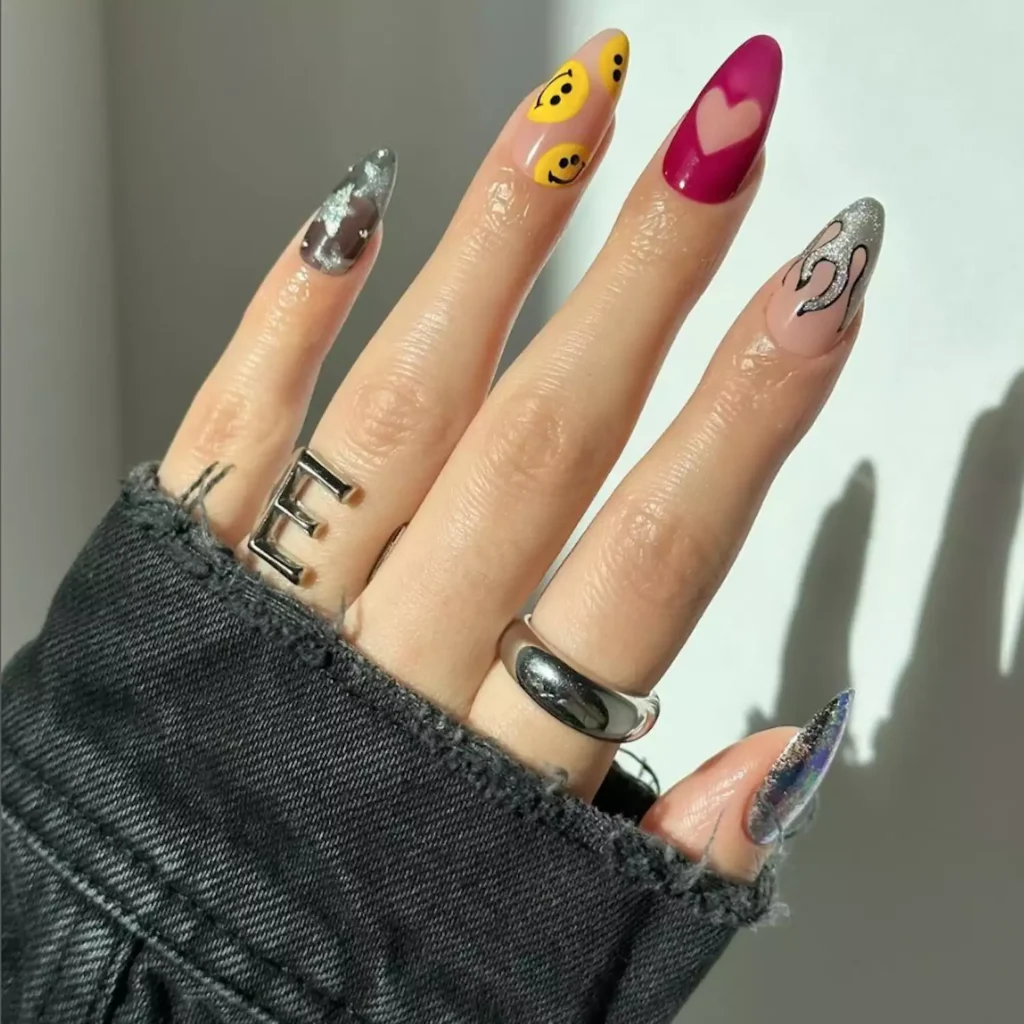 Long acrylic nails are a statement, and it’s not for an everyday look. Hearts, gems, and 3D art look great… for photos. In real life, they’re high-maintenance and break-prone. If you go long, pick one bold element and stop. Maximalism stacks fail fast.